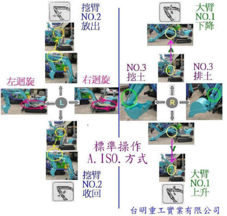 但自從小松PC200-3型新車大量出現(1980左右那年我有去參觀發表會也有試開),使用小松(台灣)方式的人增多 ,為何 稱為台灣小松方式 這是因為當年引進台灣的新挖土機,日本出口的操作方式均為ISO國際標準方式& JIS日本工業規格, 或稱標準操作方式 (或稱A操作)大家都習慣稱為小松方式,但是在日本,真正的小松操作方式與日立是一樣的(B操作) 旋轉用左手的前後