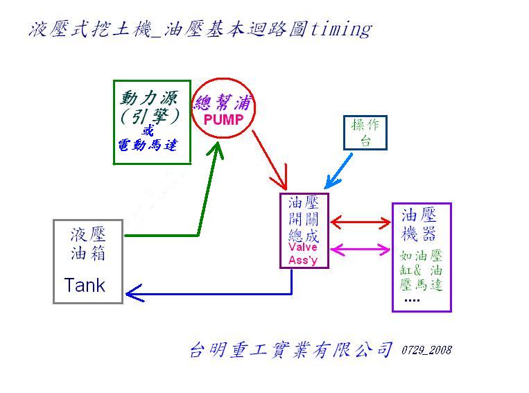 如上圖(timing挖土機油壓基本迴路圖)所示