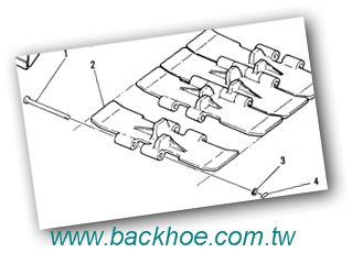 圖二的套管式履帶通用於目前挖土機(15級以上機型), 推土機,牽引機…. 最早常見於推土機, 此型履帶維修方便, 一般常見磨損,為履帶套管,鏈節,當履帶套管摩損時 ,可將套管用機具翻面, 再使用一次(如推土機), 鏈節,地滾輪,大齒輪(或稱鏈輪),惰輪….再做硬面焊接修補,(十幾二十年前alex每天都在做此類工作), 但挖土機因某些原因, 大多就直接換新套管不翻面再使用 , 至於小型挖土機因整組履帶較便宜 ,翻修不見得划算 ,所以目前大多直接整組換新不再翻修。